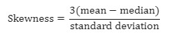 왜도를 측정하는 방법에는 여러 가지가 있지만, 피어슨의 비대칭 계수(Pearson’s skewness coefficients)가 간단하고 이해하기 쉽습니다. 이는 평균값(mean), 중앙값(median), 최빈값(mode) 간의 차이를 비교한 후, 그 차이를 표준편차(standard deviation)로 나눈 값을 사용합니다. 수식으로는 다음과 같이 표현할 수 있습니다:
